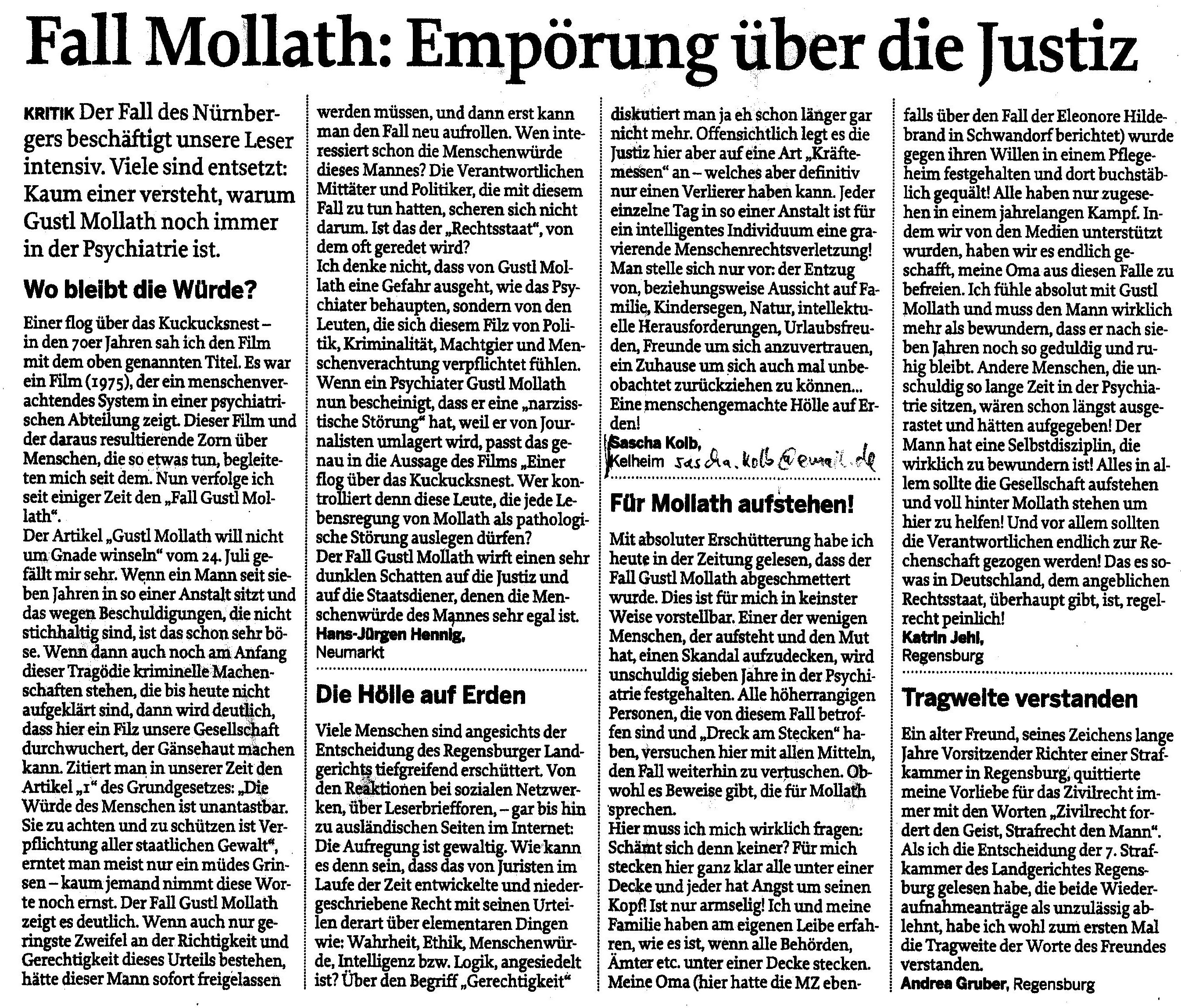 Es freut mich sehr, dass morgen von Juristen öffentlich Postition zugunsten Gustl Mollaths bezogen wird.