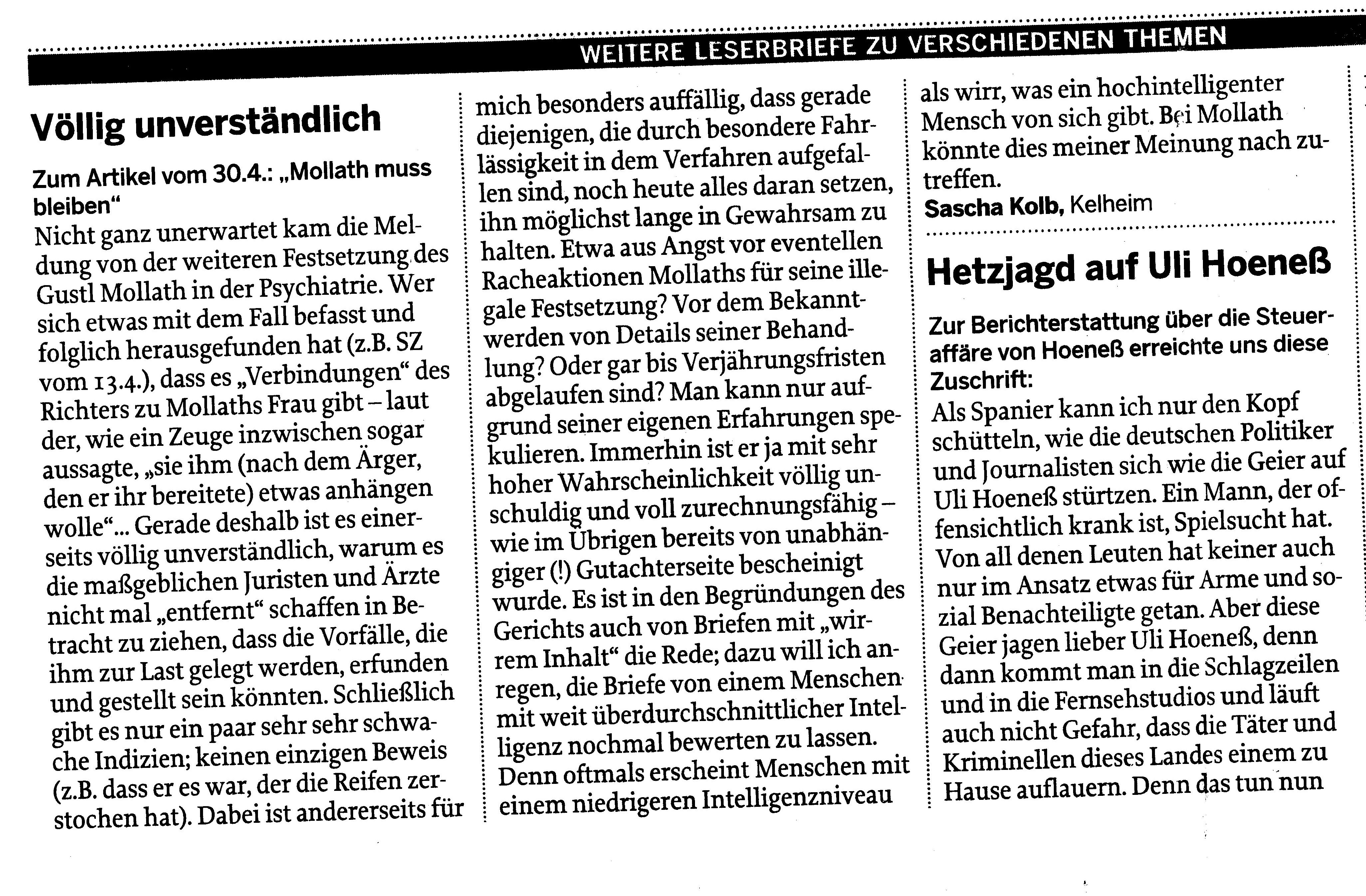 Die beiden Leserbriefe, die in der Mittelbayerischen Zeitung von mir erschienen sind:
