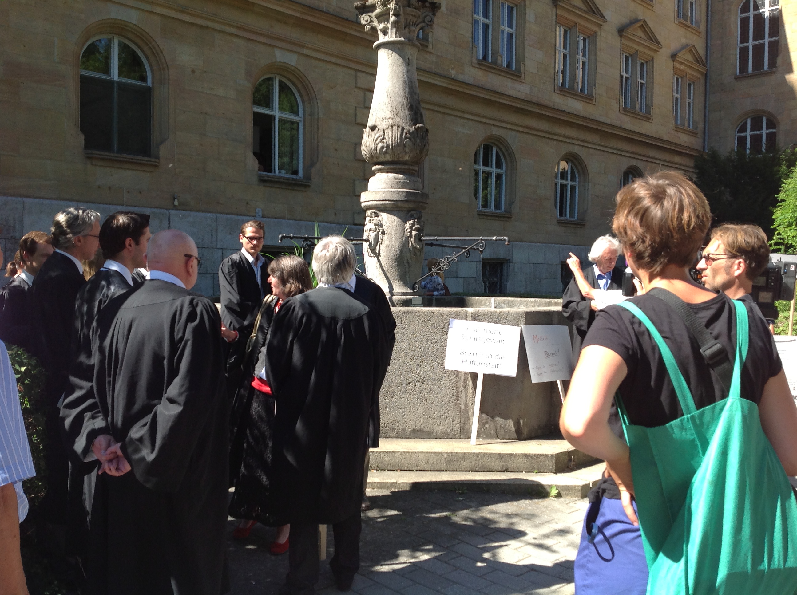 auf einen "Marsch" durch die Innenstadt verzichtet, Die schwarzen Roben der armen Juristen heizten sich auf wie Solarkocher. Da war ein längerer Aufenthalt im