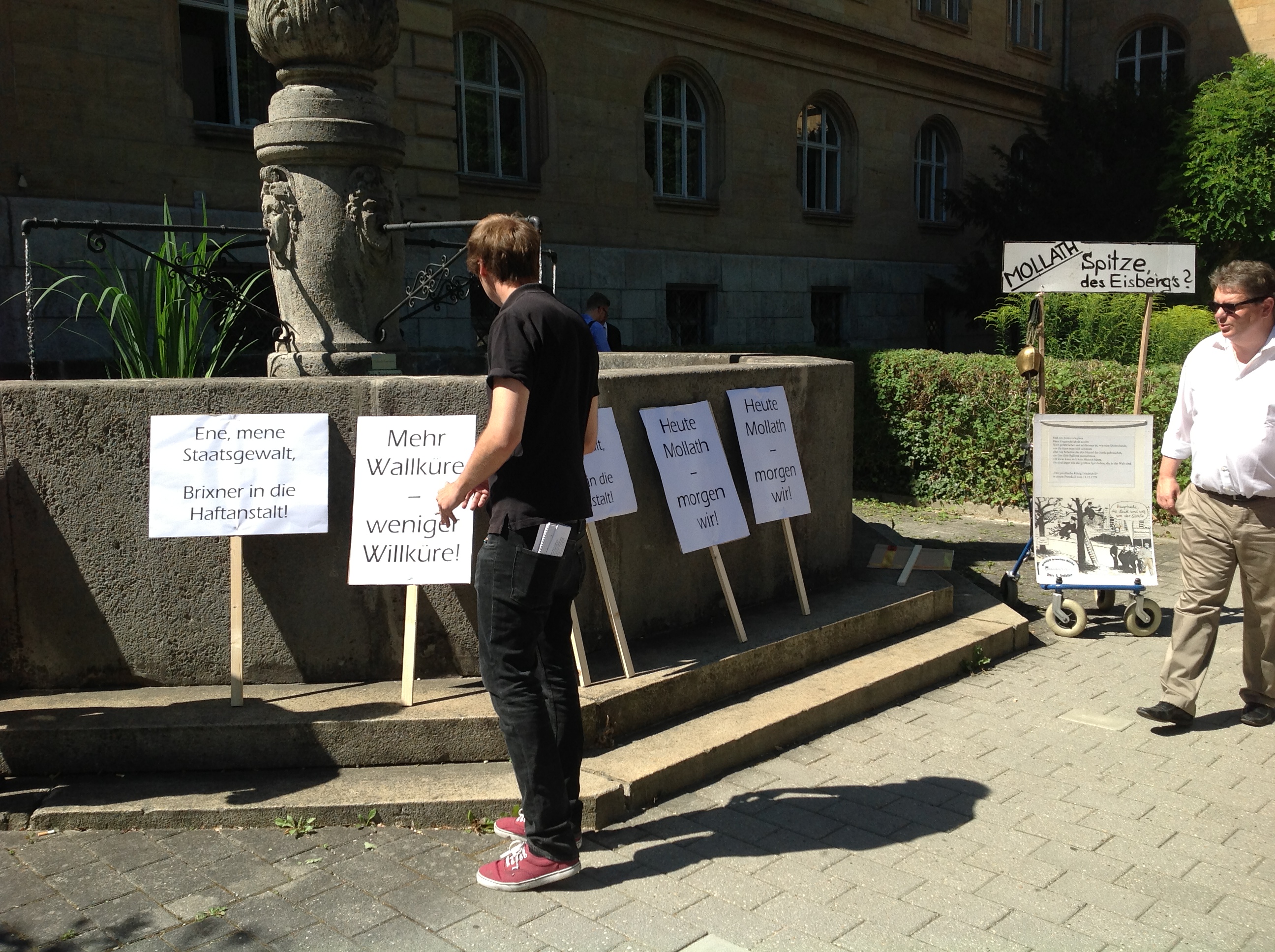 Es waren am Freitag, den 2.8.2013 um 11:00 Uhr etwa 40 Leute anwesend: Juristen, Reporter und normale Menschenbürger. Die Aktion wurde meiner Meinung nach hauptsächlich für die Presse durchgeführt, da